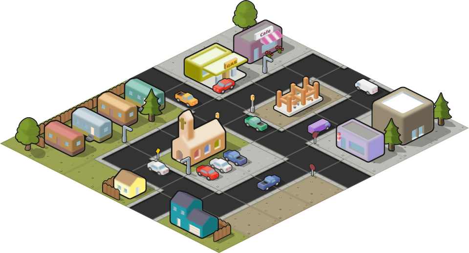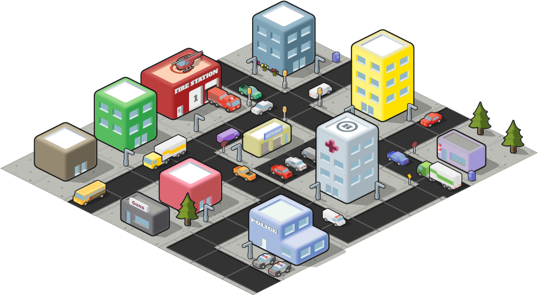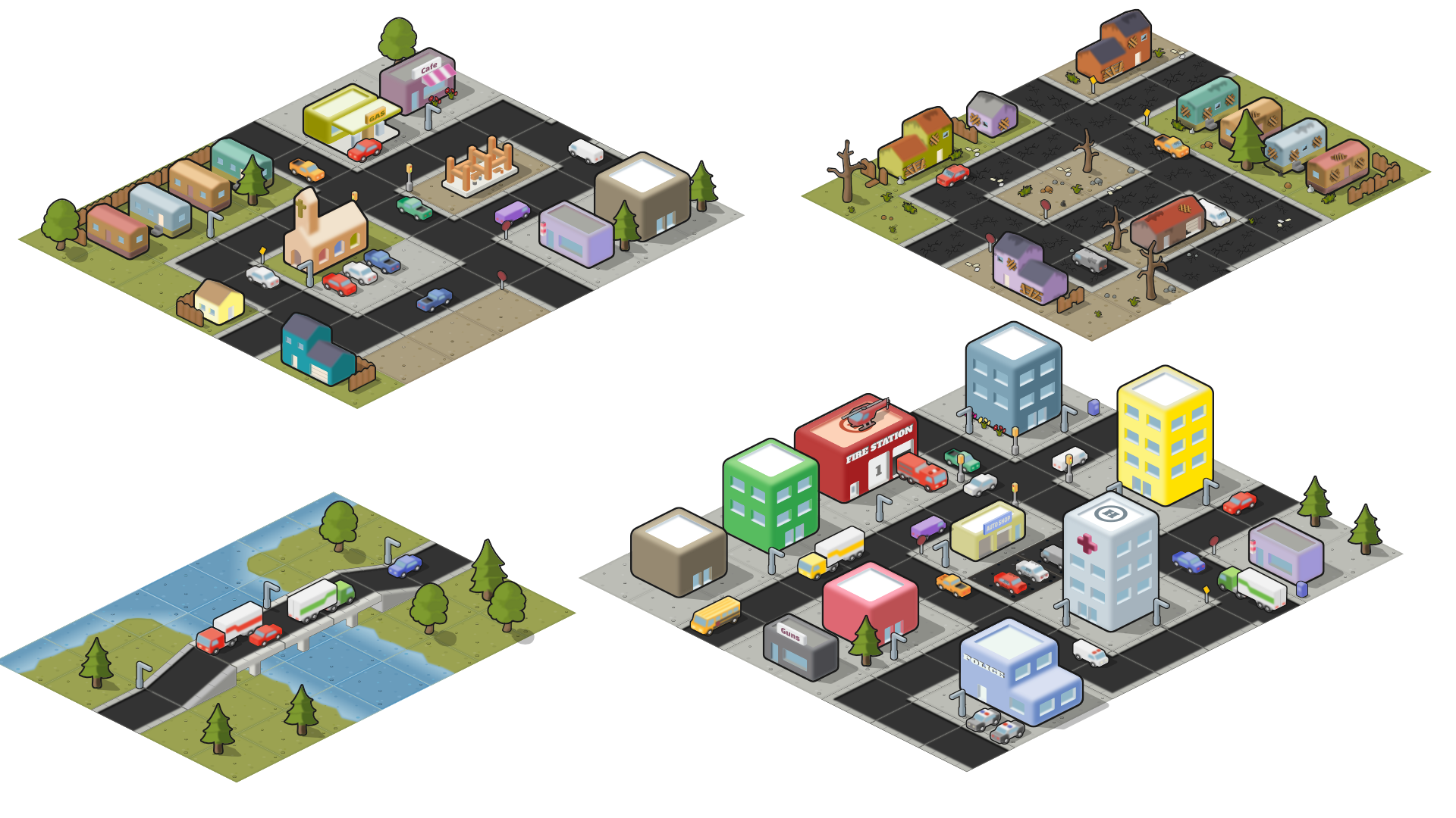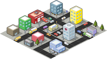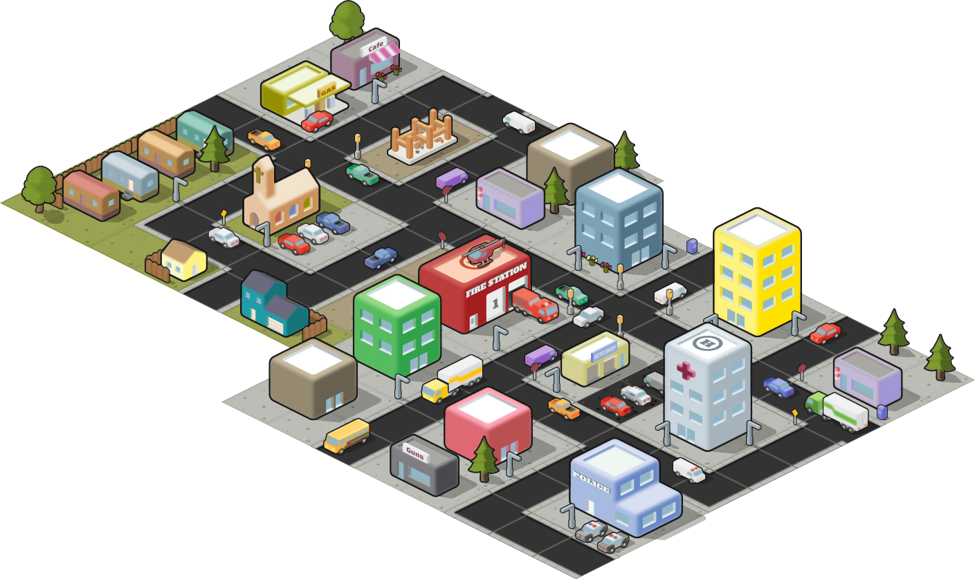 The Isometric City pack includes everything you need to create an isometric-style city layout.